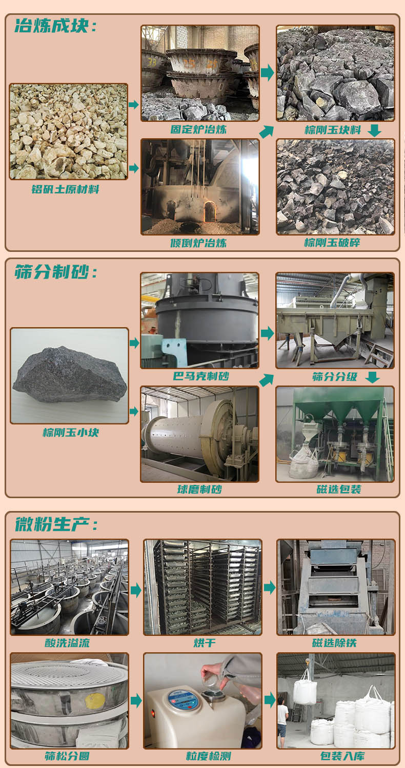 傾倒爐棕剛玉磨料60目生產(chǎn)流程: