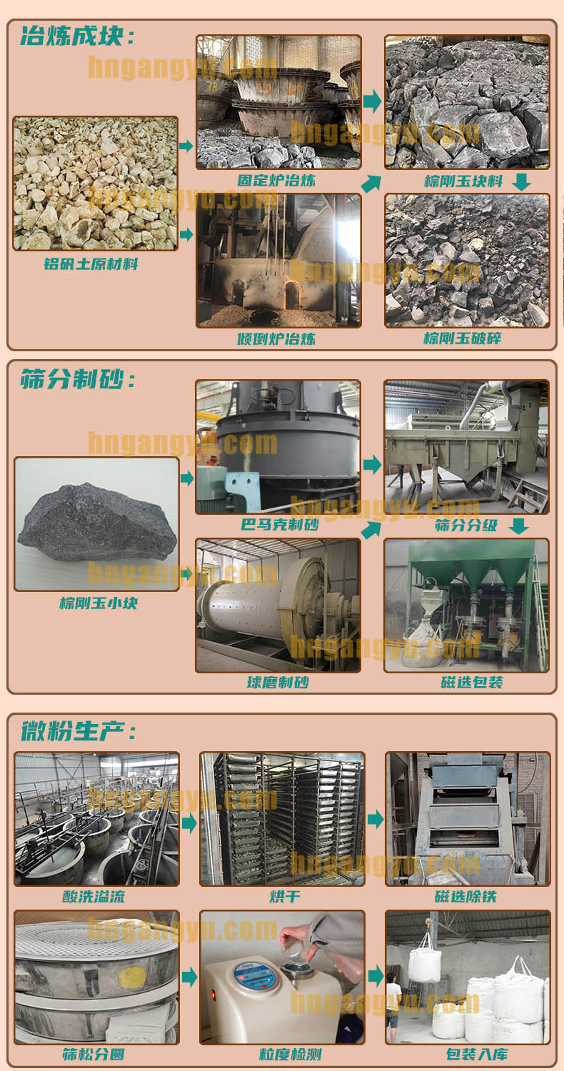 一級棕剛玉研磨砂的生產(chǎn):